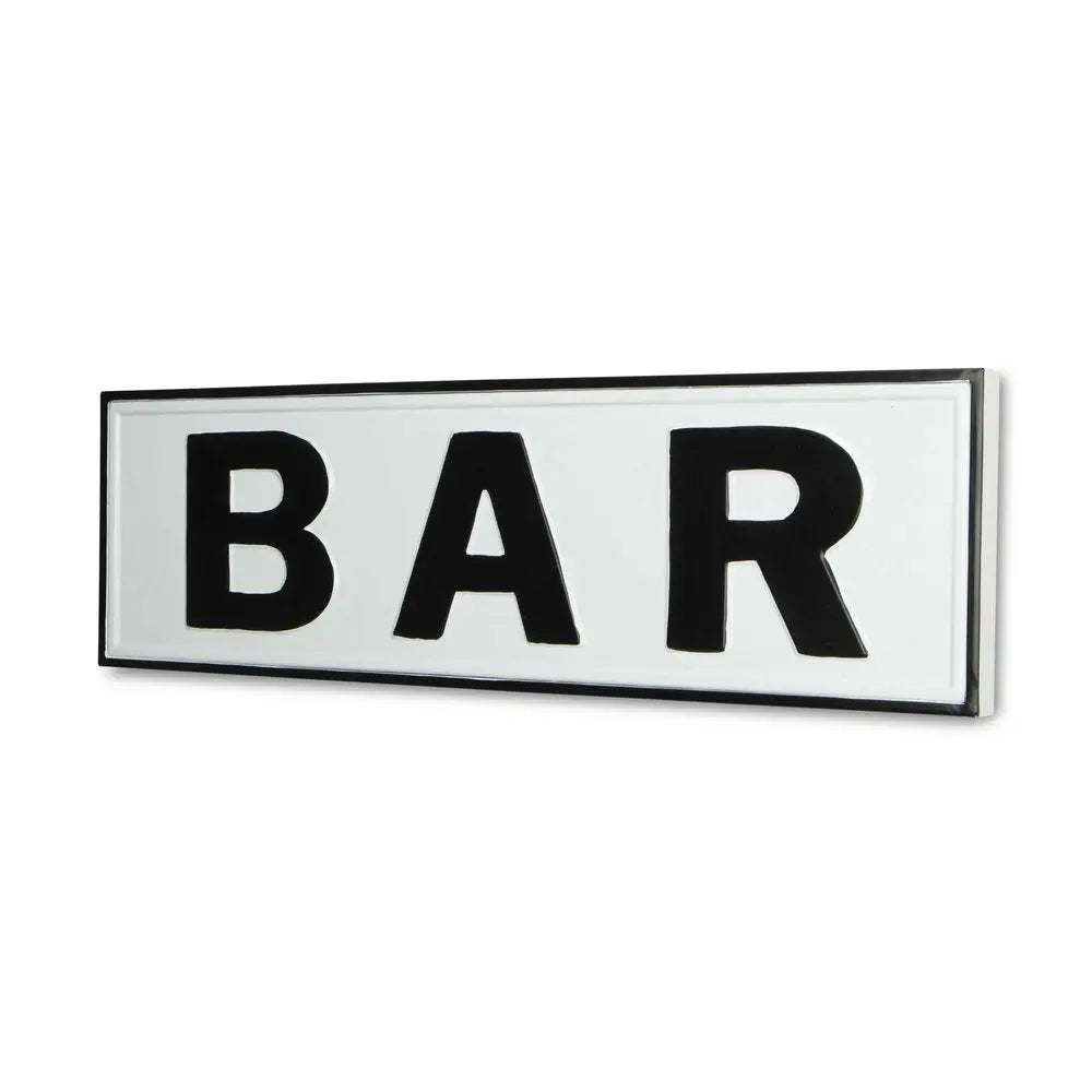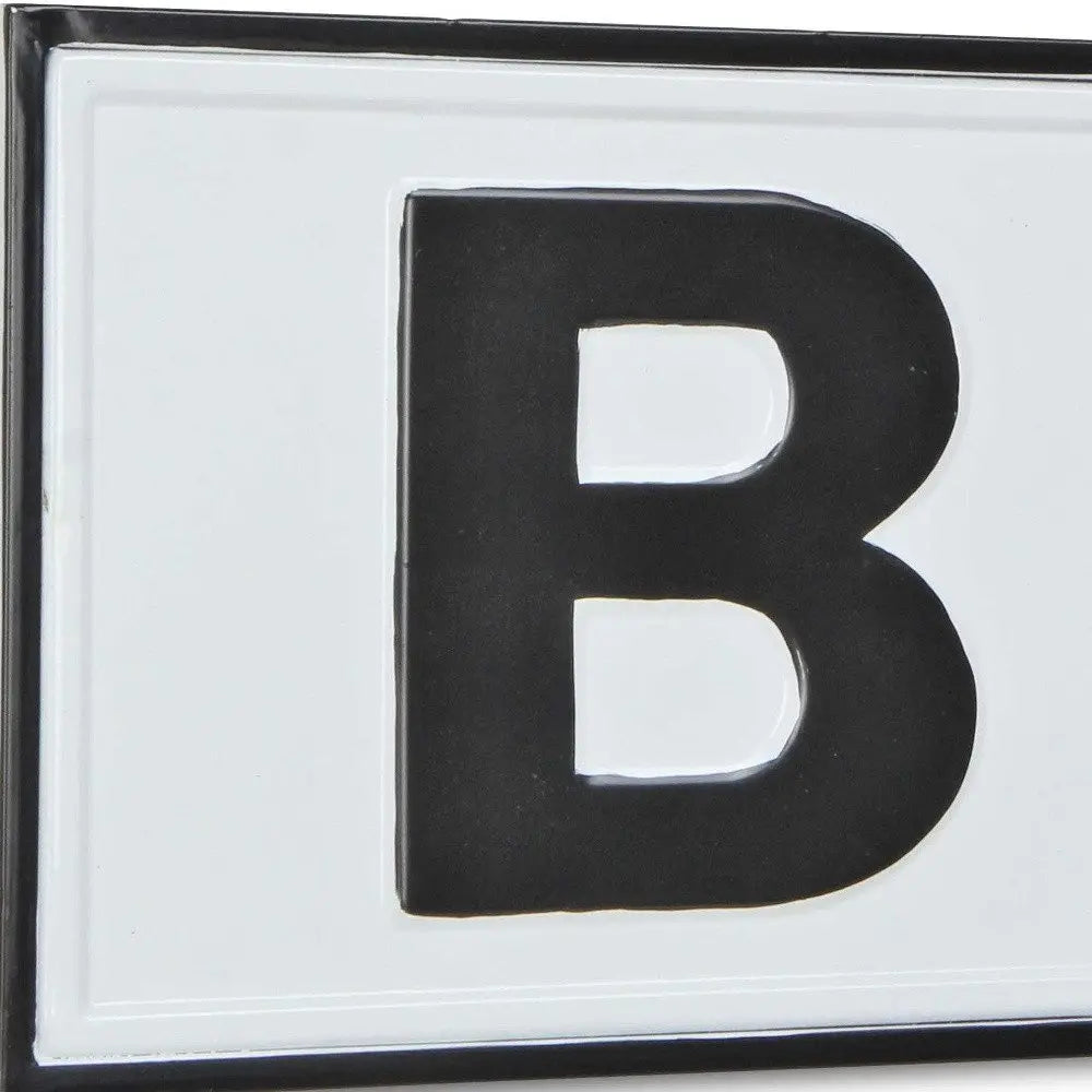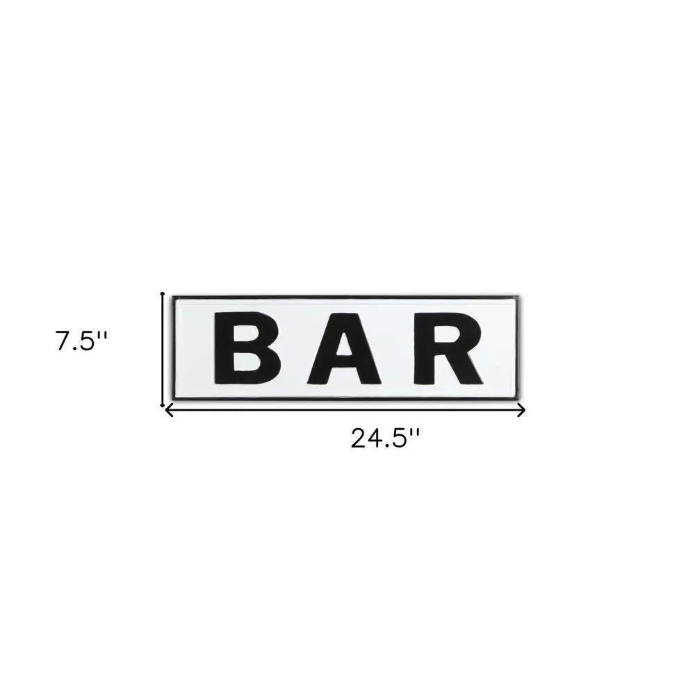 8" X 25" White and Black Handcrafted Bar Metal Wall Decor