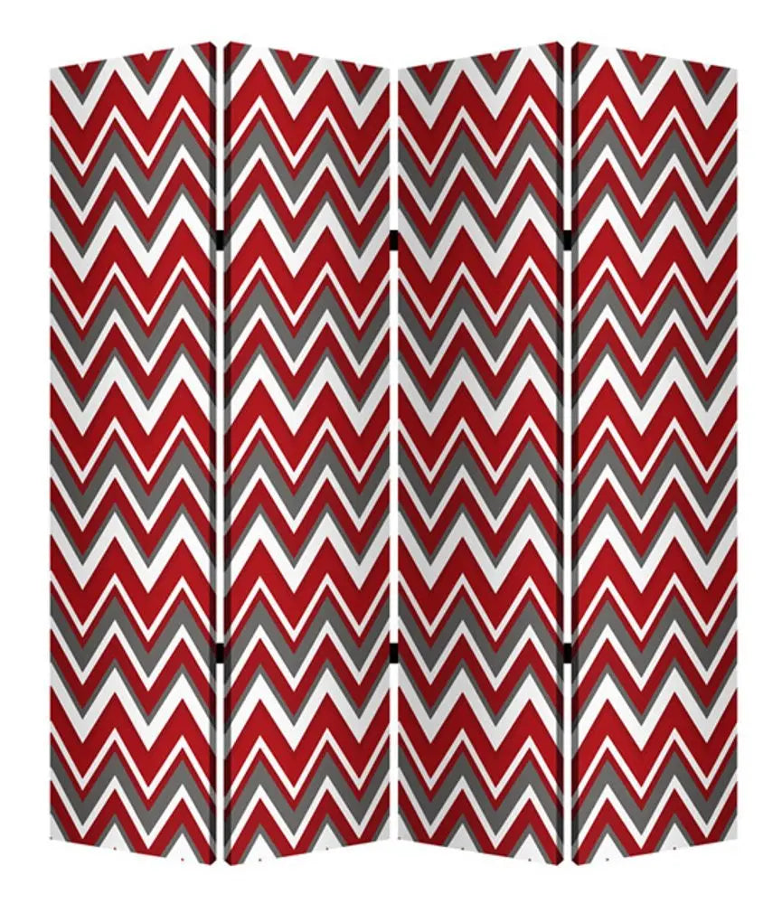 84" X 84" Red And Gray Wood Canvas Screen