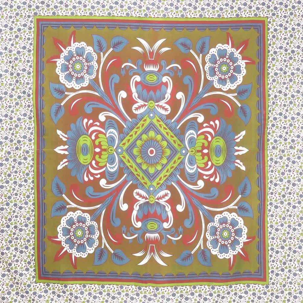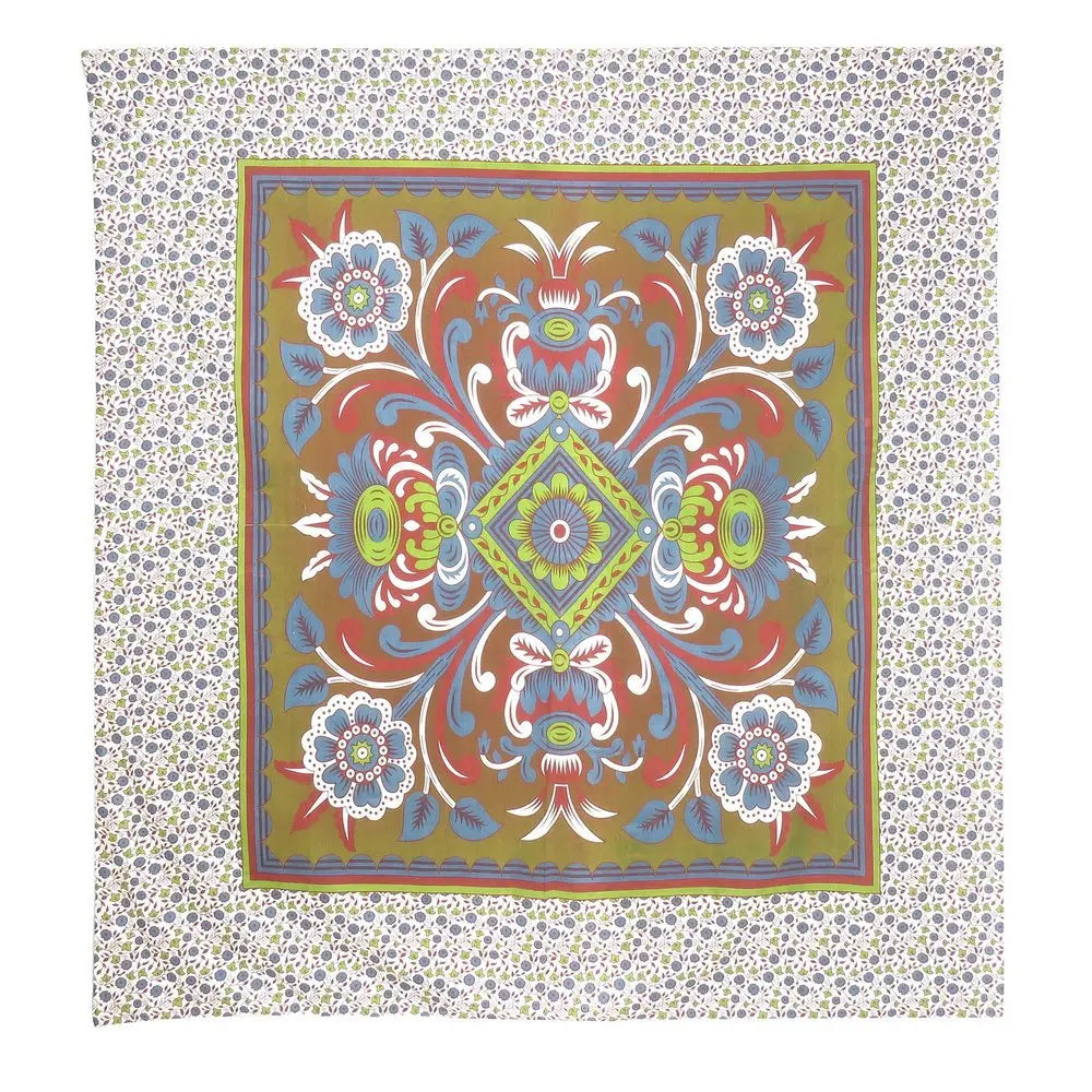 • 88" X 84" Green Red And White Floral Cotton Hanging Tapestry