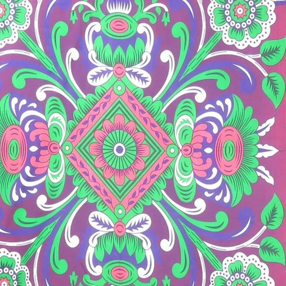 88" X 84" Pink Green And White Floral Cotton Hanging Tapestry