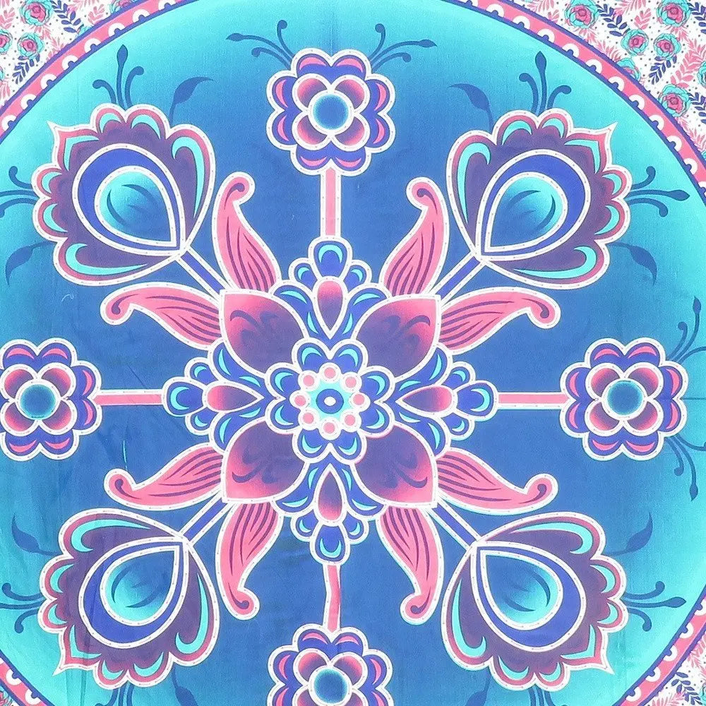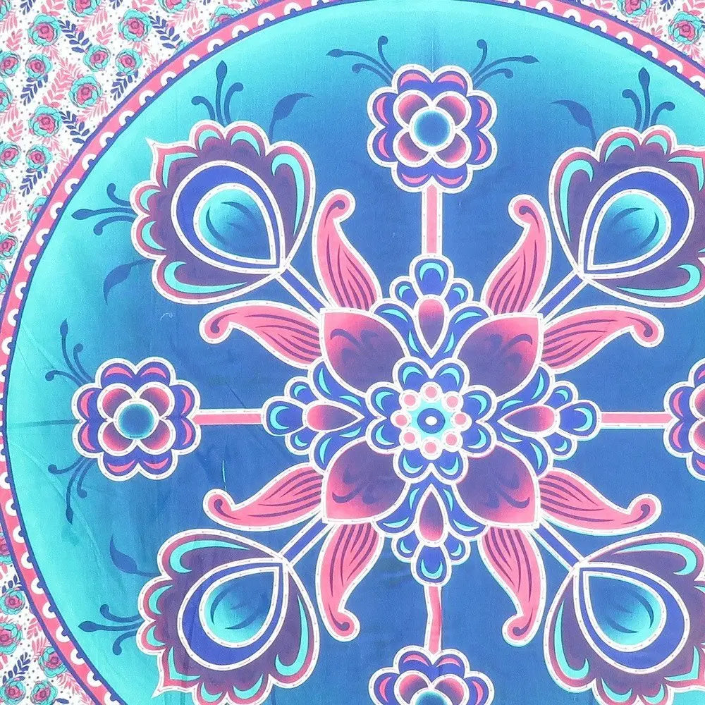 88" X 84" Pink Sky Blue And White Floral Cotton Hanging Tapestry