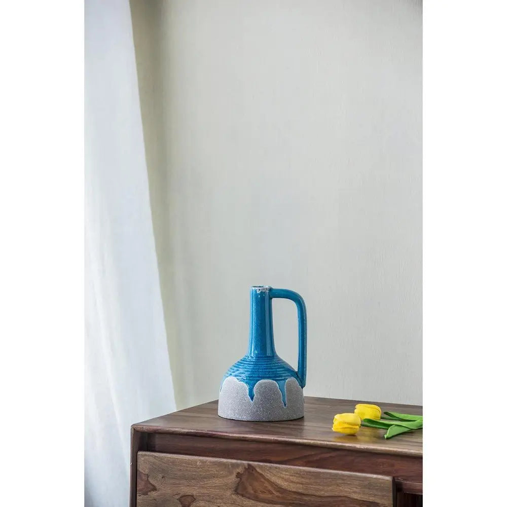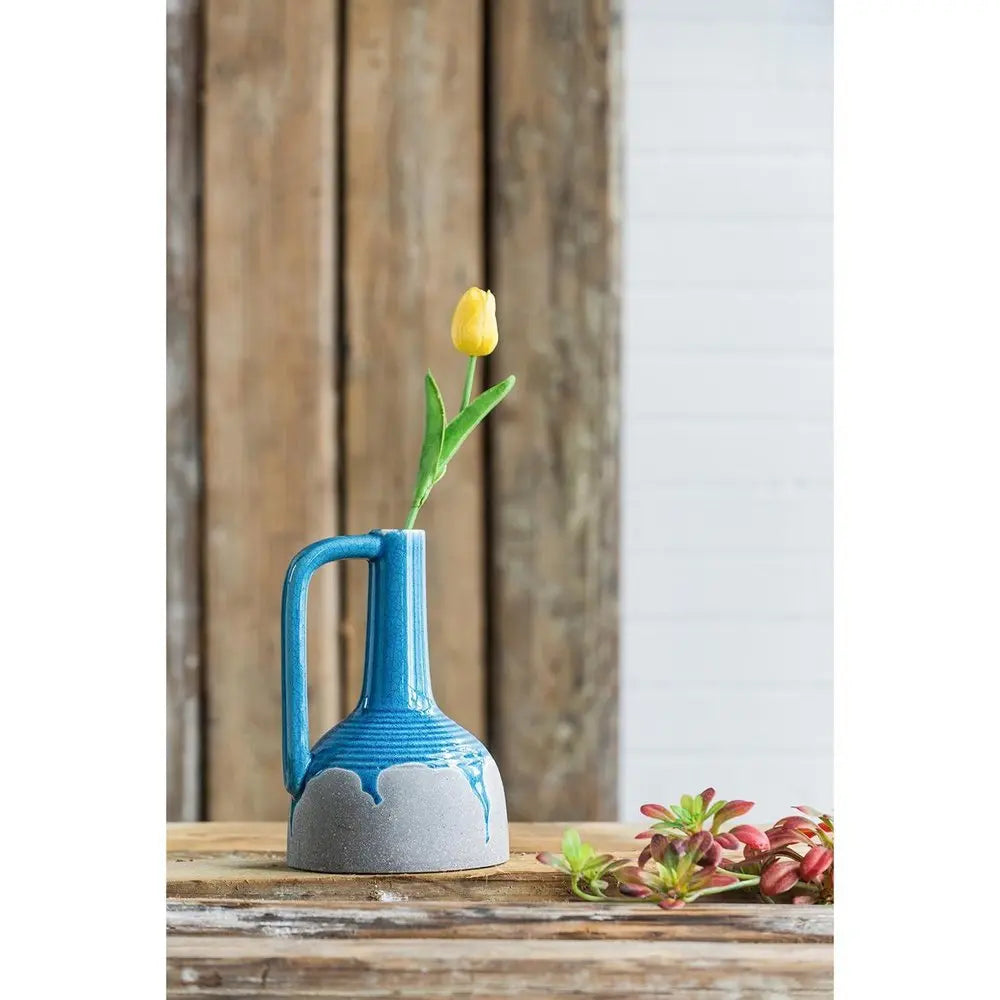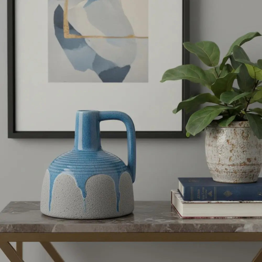 9" Blue and Gray Bud Ceramic Jug Vase With Does Not Apply