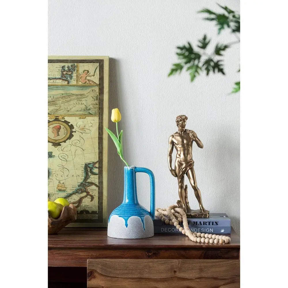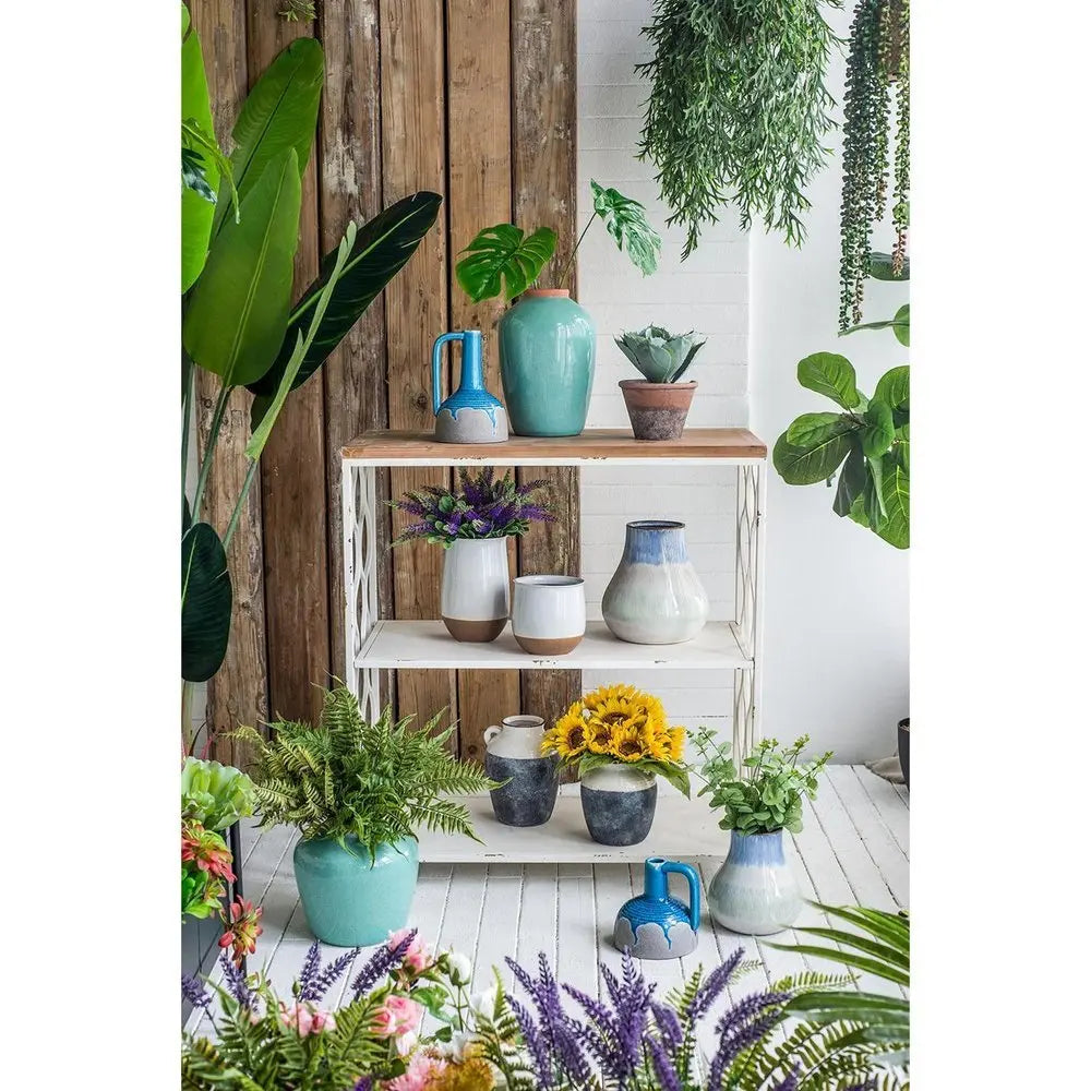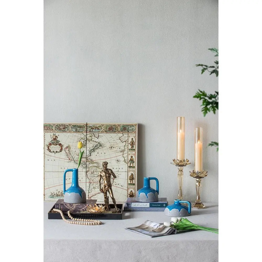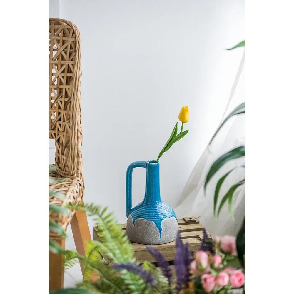 9" Blue and Gray Bud Ceramic Jug Vase With Does Not Apply