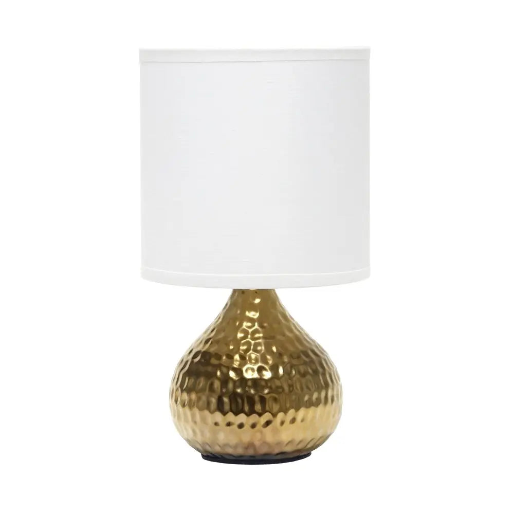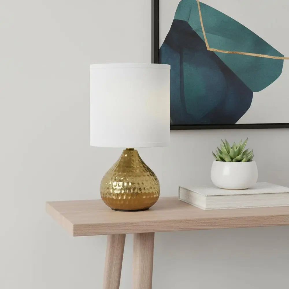 9" Gold Porcelain Round Table Lamp With White Drum Shade
