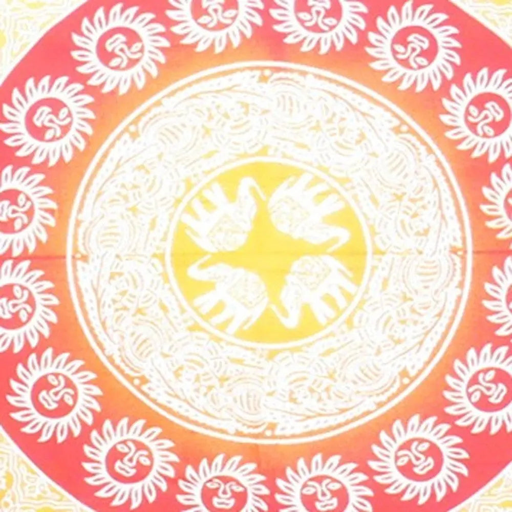 92" X 84" Mustard Red And White Mandala Cotton Hanging Tapestry