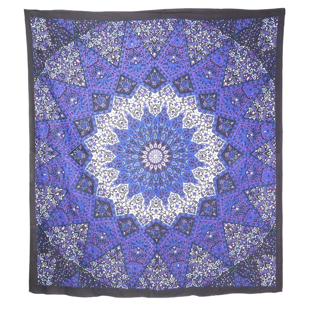 92" X 84" Purple Black And White Mandala Cotton Hanging Tapestry