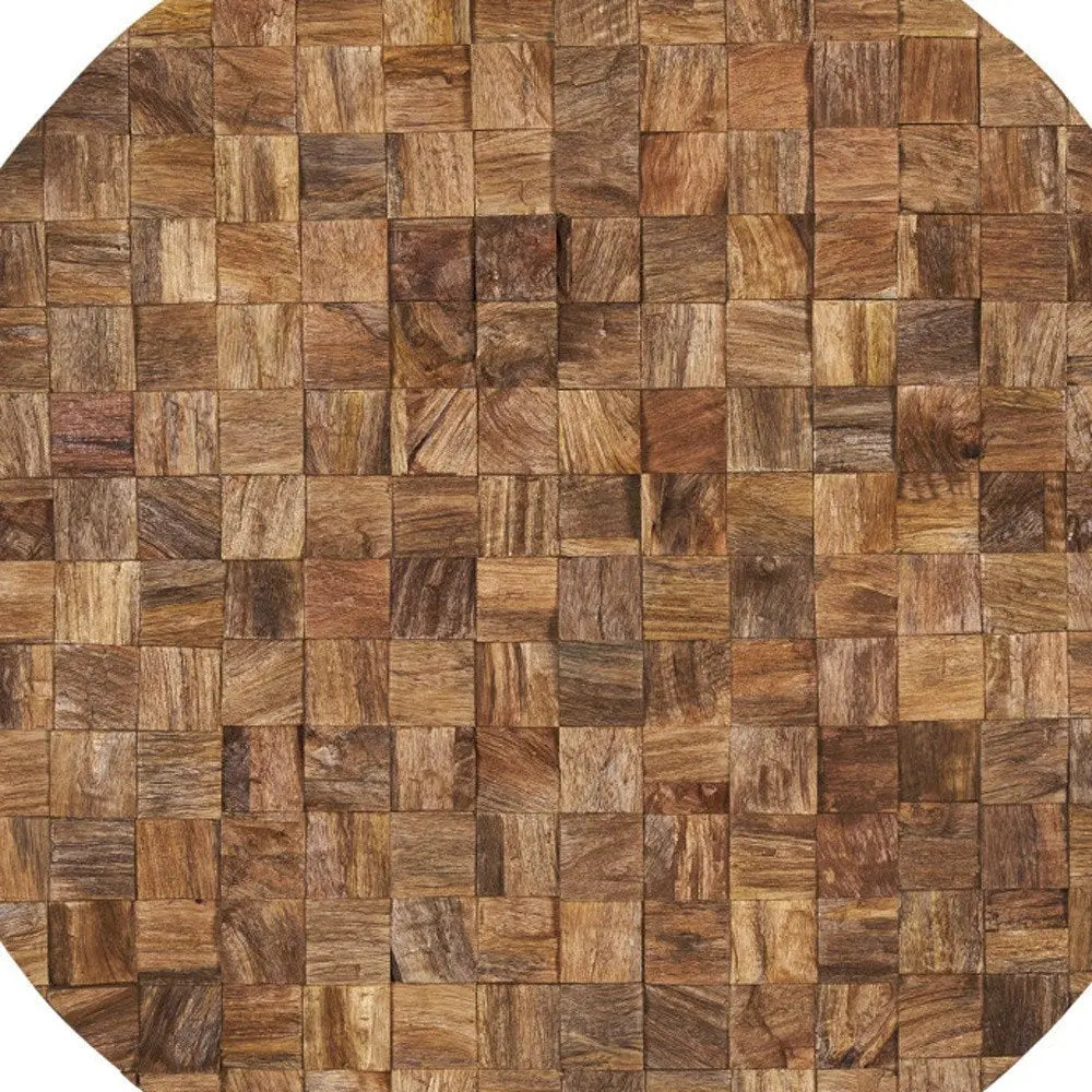 Into the Abyss II 32" X 32" Brown Geometric Wood Circle Hanging Dimensional Sculpture