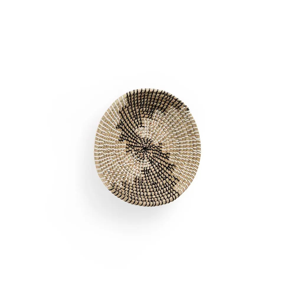 Luna 12" X 12" Black Light Brown And White Abstract Geometric Seagrass Circle Hanging Dimensional Sculpture