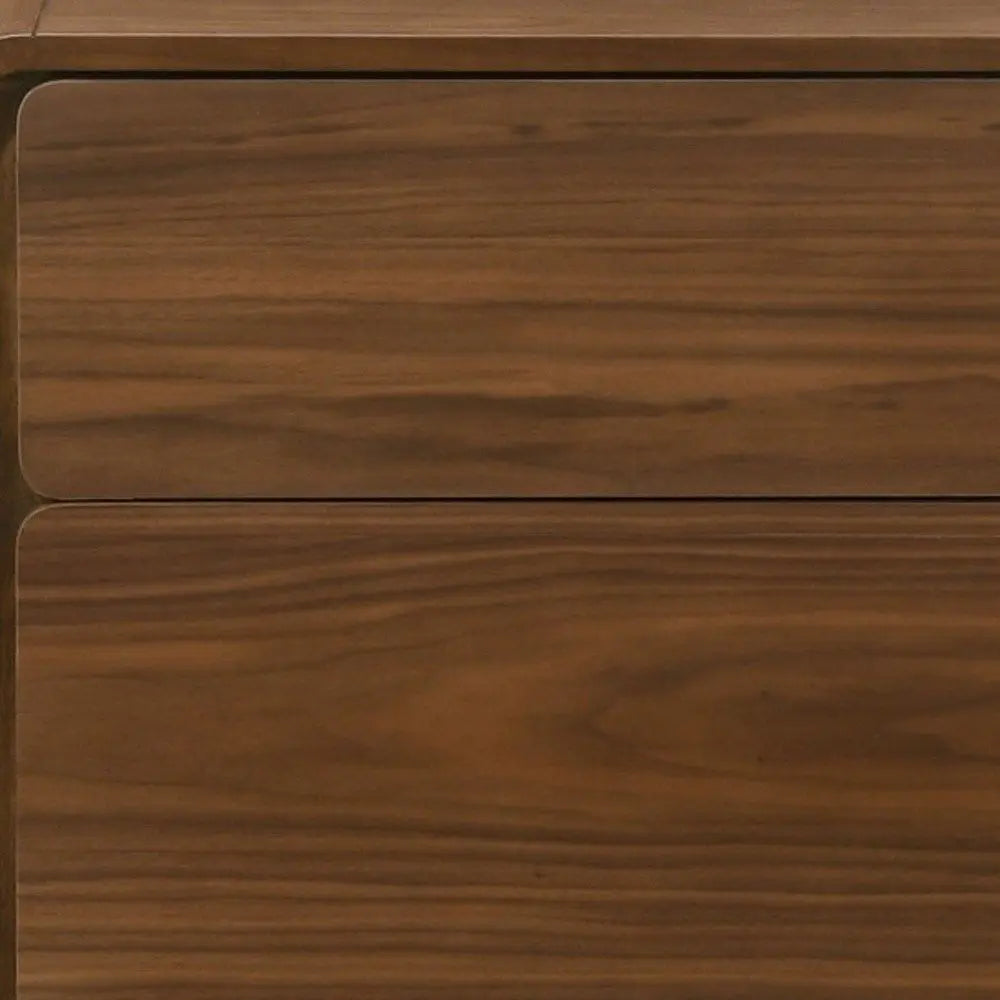 Modern Walnut Brown Nightstand with Two Drawers