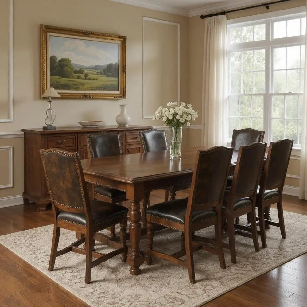 Nine Piece Brown Solid Wood Dining Set with Eight Chairs