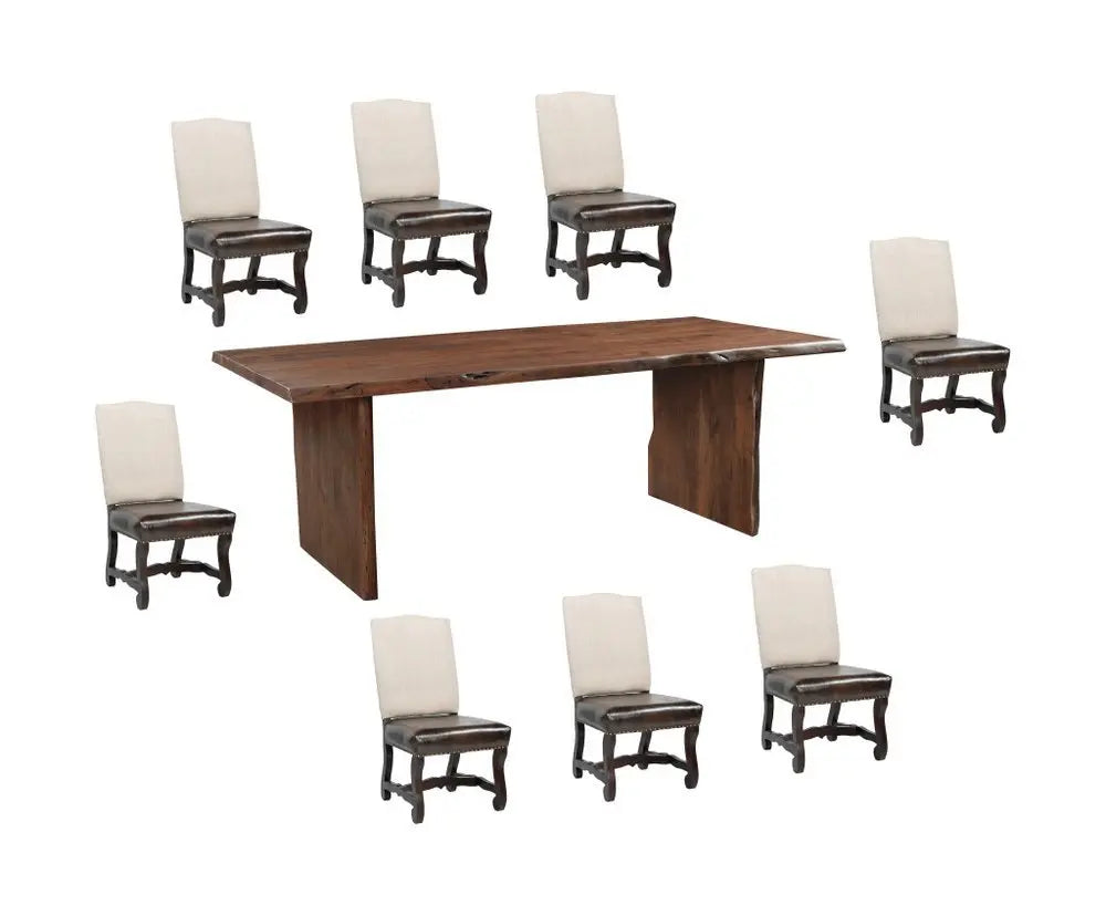 Nine Piece Brown Solid Wood Dining Set with Eight Chairs