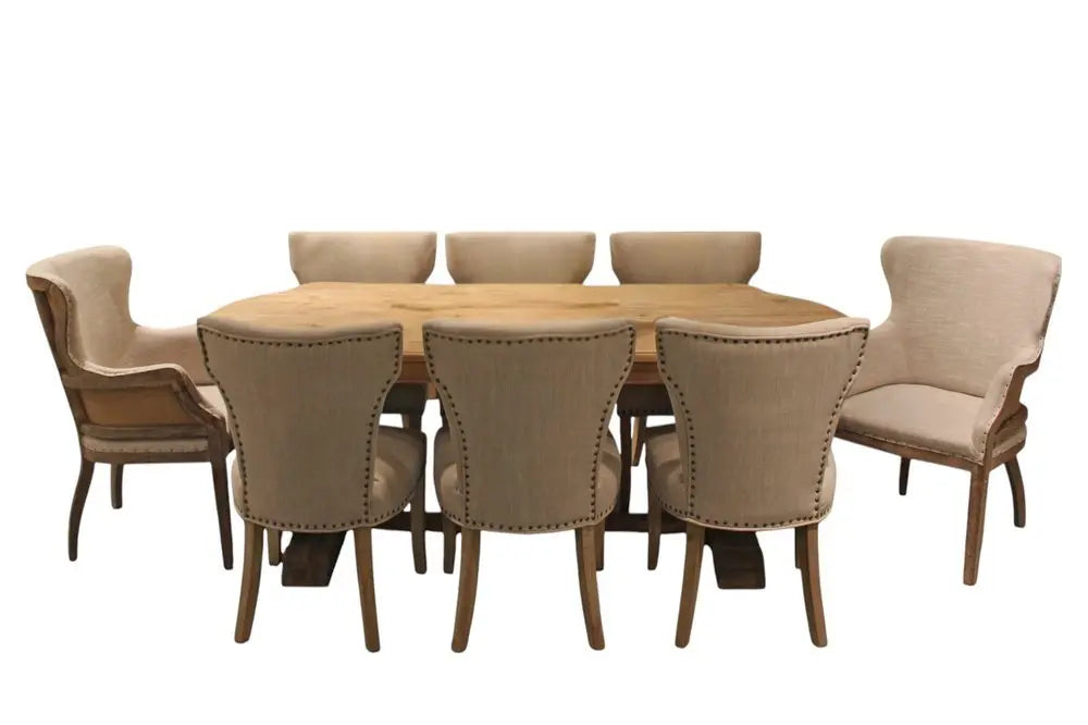 Nine Piece Natural Solid Wood Dining Set with Eight Chairs