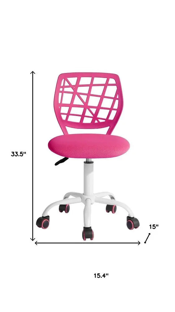 Pink and White Adjustable Height Swivel Rolling Office Chair