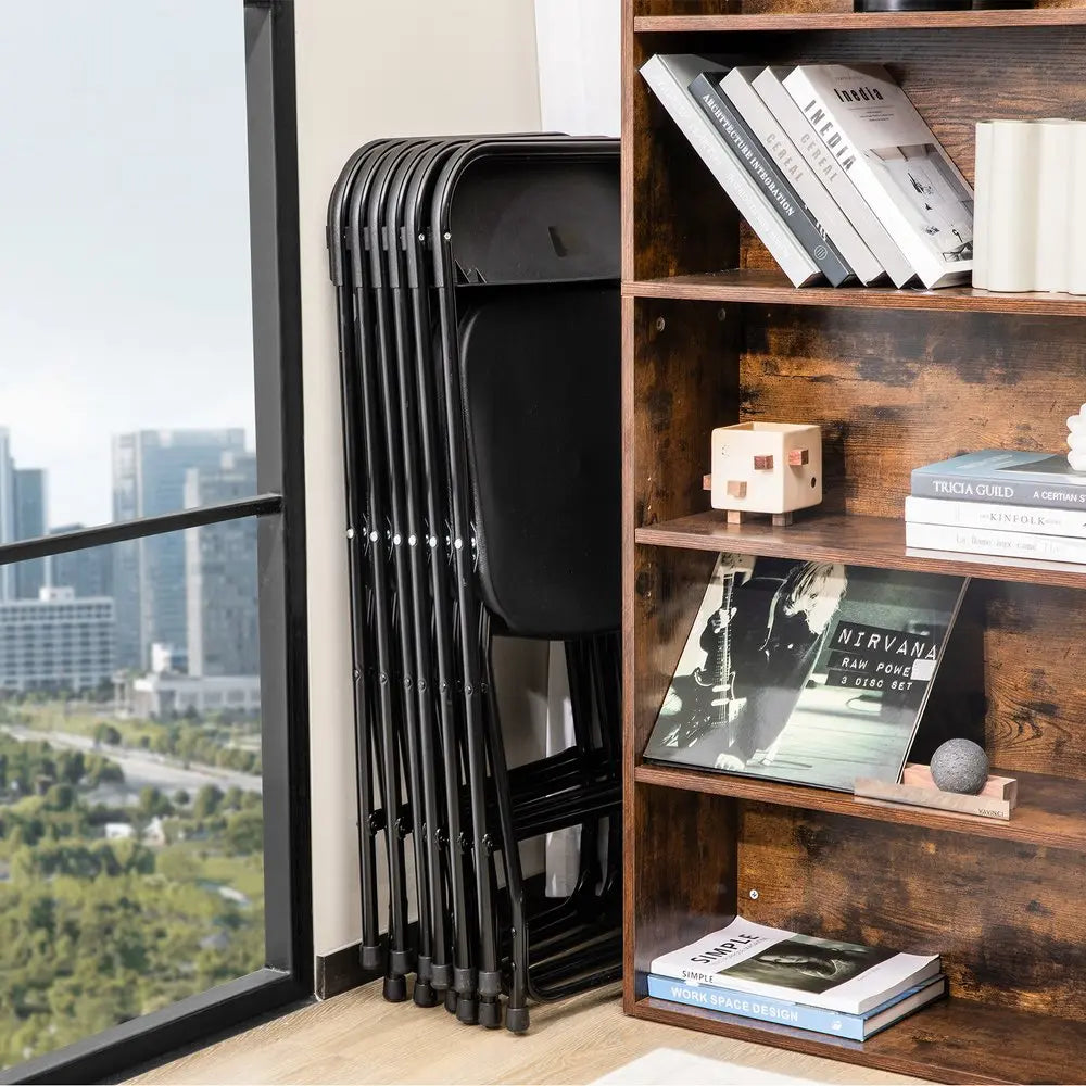 Set of Four Black Metal Outdoor Folding Stacking Dining Chairs