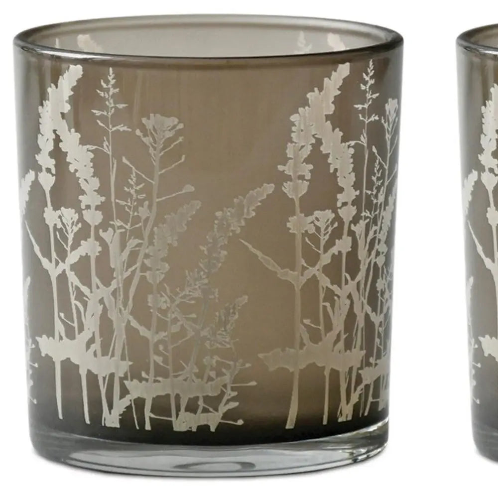Set of Three Gray Distressed Floral Glass Tabletop Votive Candle Holders