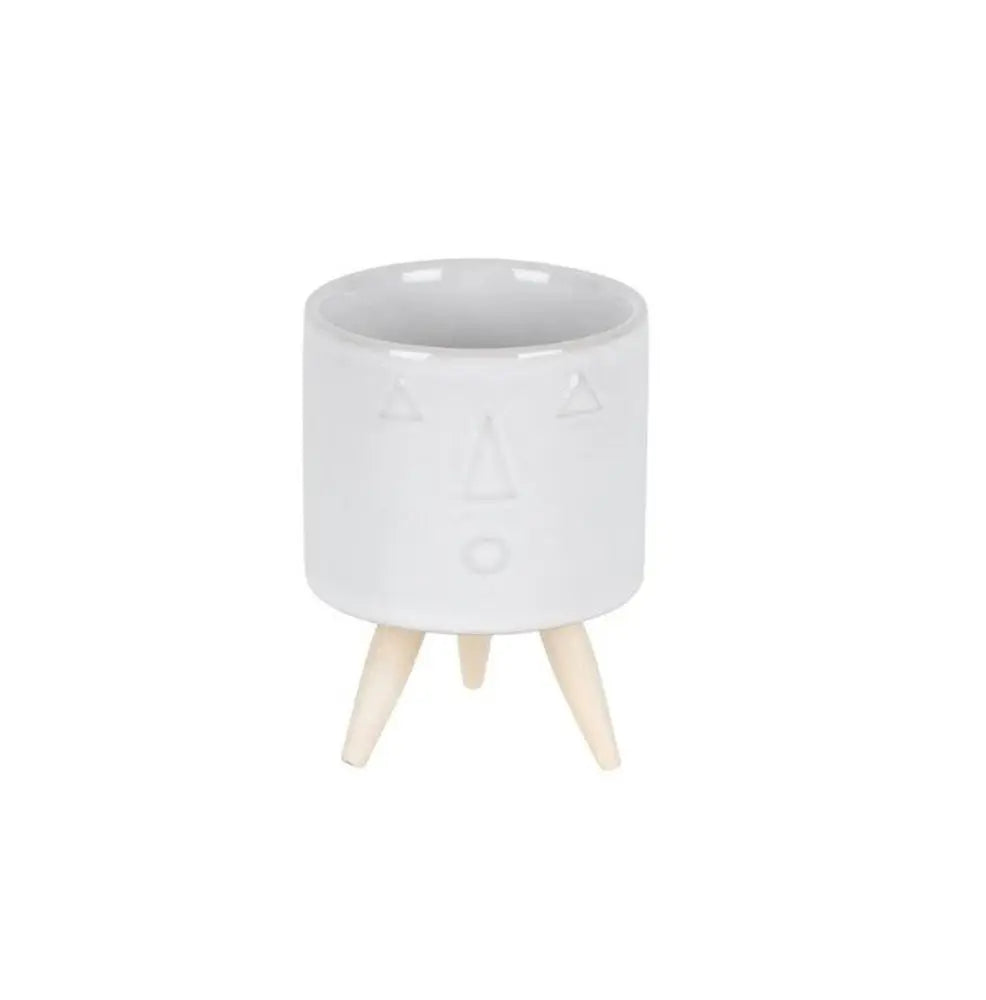 Set of Three White Porcelain 1 Ounce Round Funny Face Pot Planters With Stands