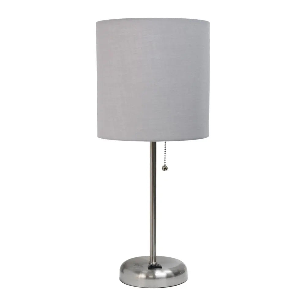 Set of Two 20" Silver Metal Table Lamp With Gray Drum Shade
