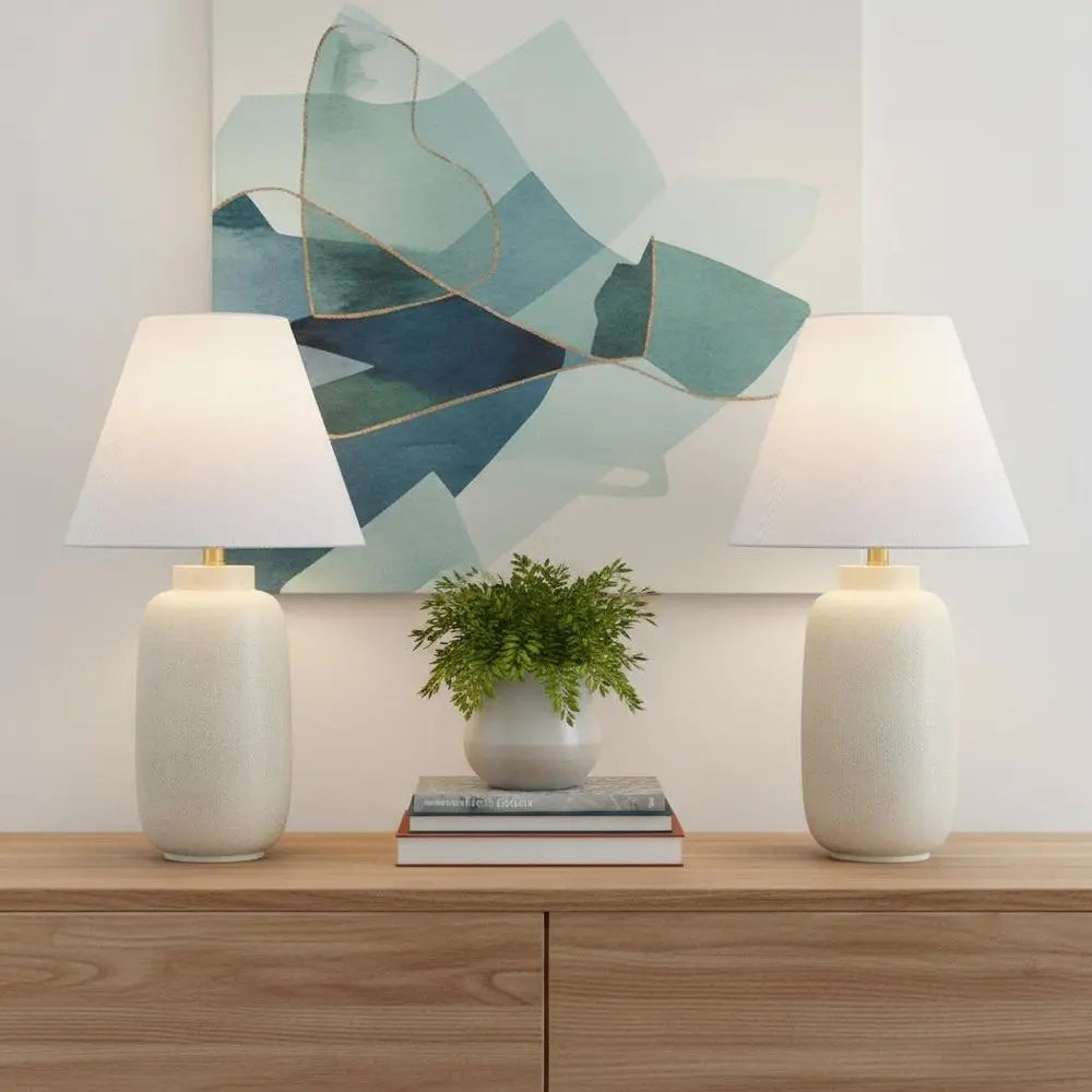 Set of Two 25" Clear Urn Table Lamps LED With Cone Shades