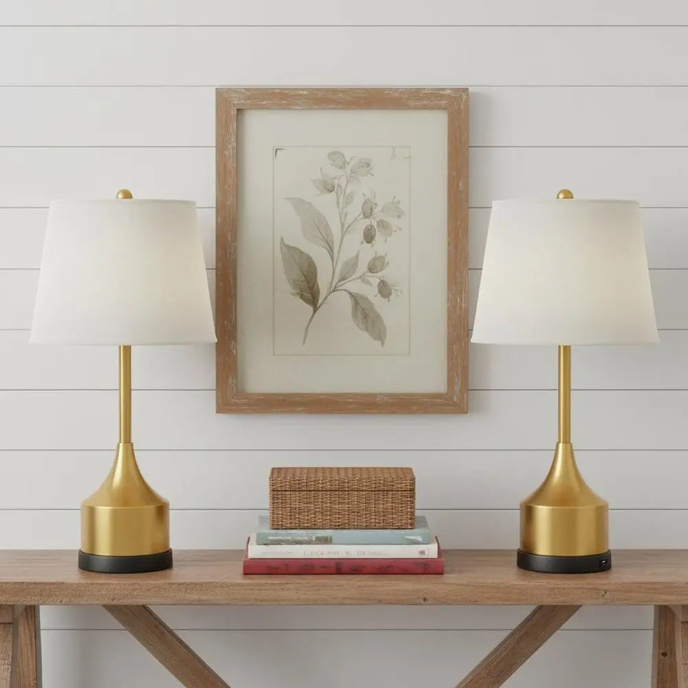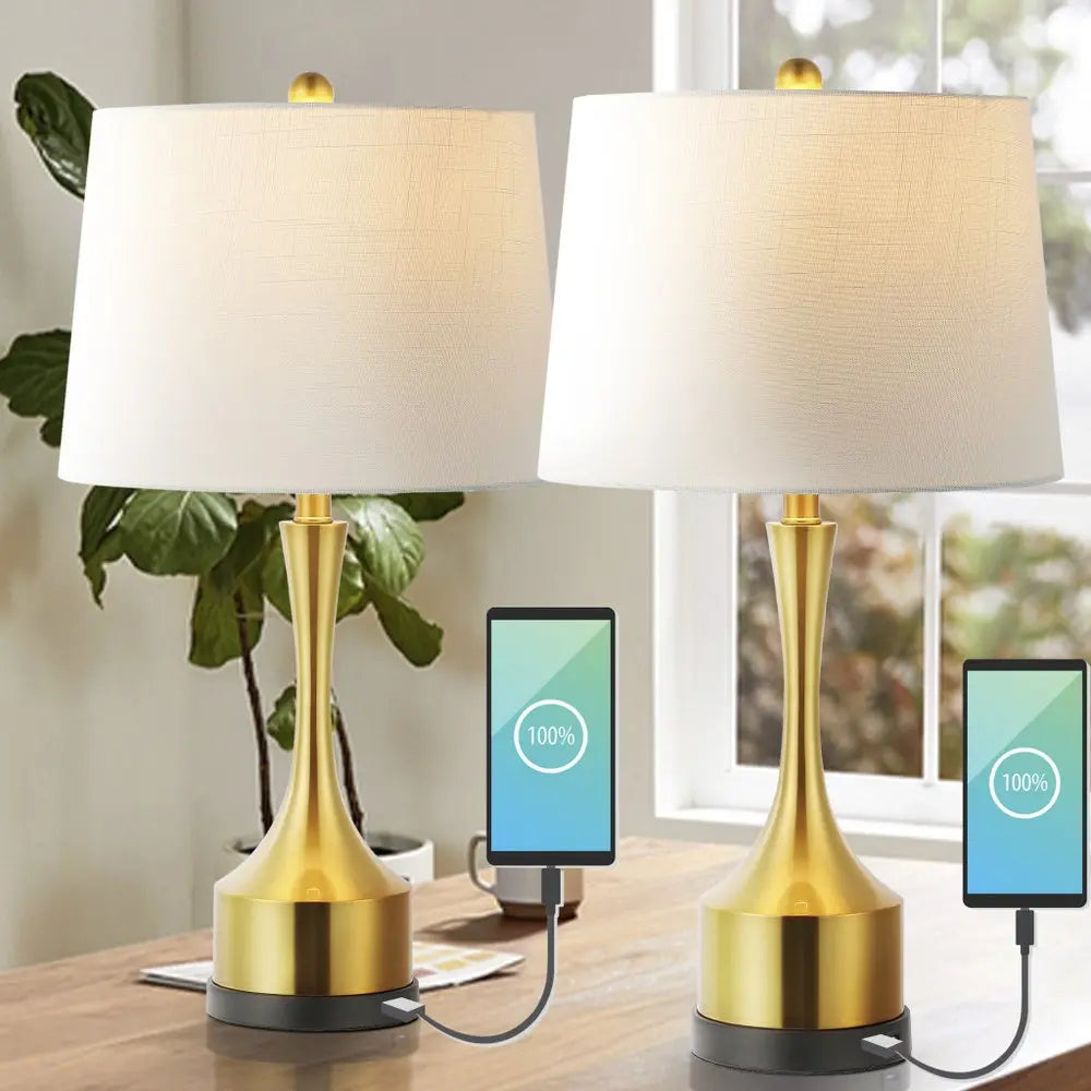 Set of Two 26" Black Novelty Table Lamps LED With Empire Shades