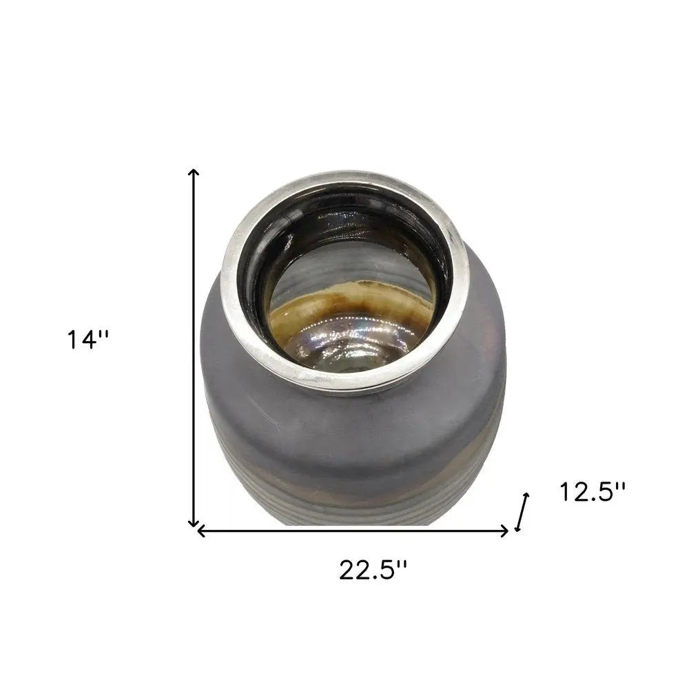 Set of Two Black And Gray Abstract Glass Round Table Vases