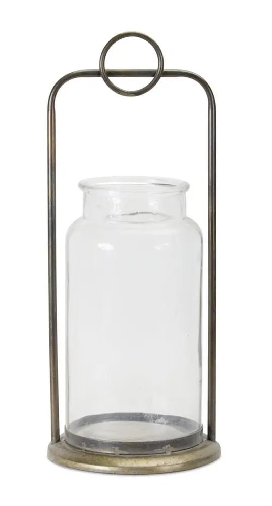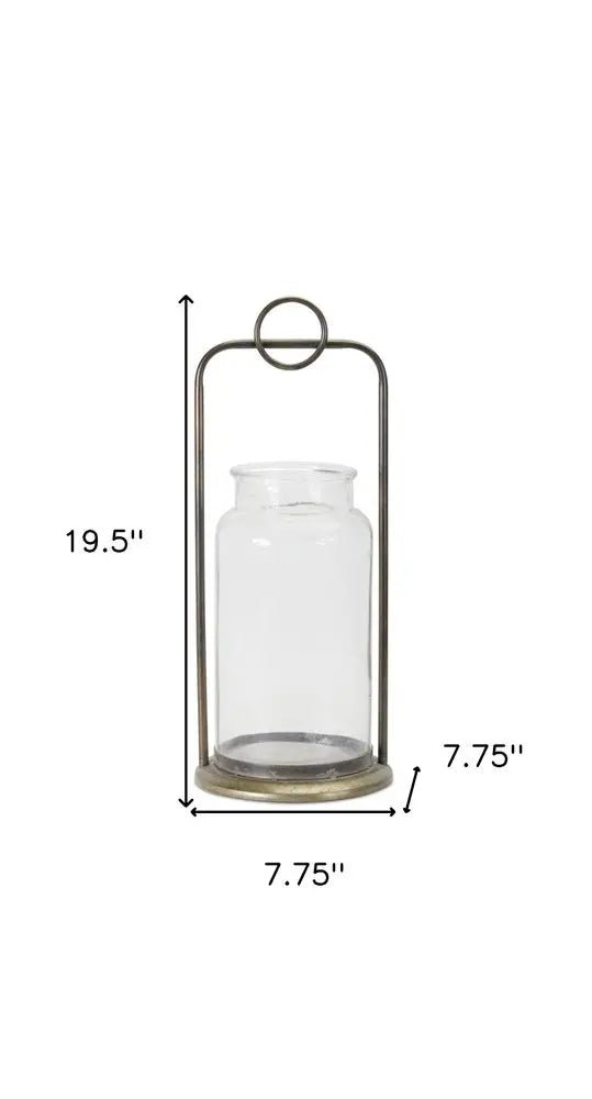 This set of two bronze metal and glass tabletop hurricane candle holders is perfect for creating an elegant atmosphere on your tabletop or mantel. Dress up your home to impress every season with this fabulous candleholder. Candleholders are an attractive way to turn a simple candle into a piece of décor. 19.5-inch h x 7.75-inch w x 7.75-inch d.