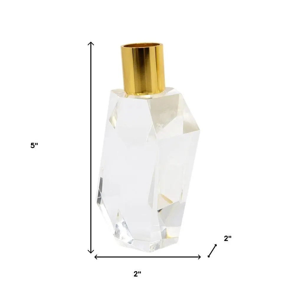 This set of two gold abstract crystal tabletop wedding taper candlesticks is a great addition to your home decor and sure to complement your existing furniture. Arriving in a set of 2 these candleholders create a well-lit centerpiece for any table setting. This candleholder is the perfect illuminating design to accent your space in style. Candleholders are an attractive way to turn a simple candle into a piece of décor. 5.00-inch h x 2.00-inch w x 2.00-inch d.