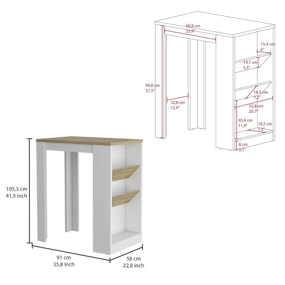 Set of Two Oak and White Wood Kitchen Island And Pantry Cabinet