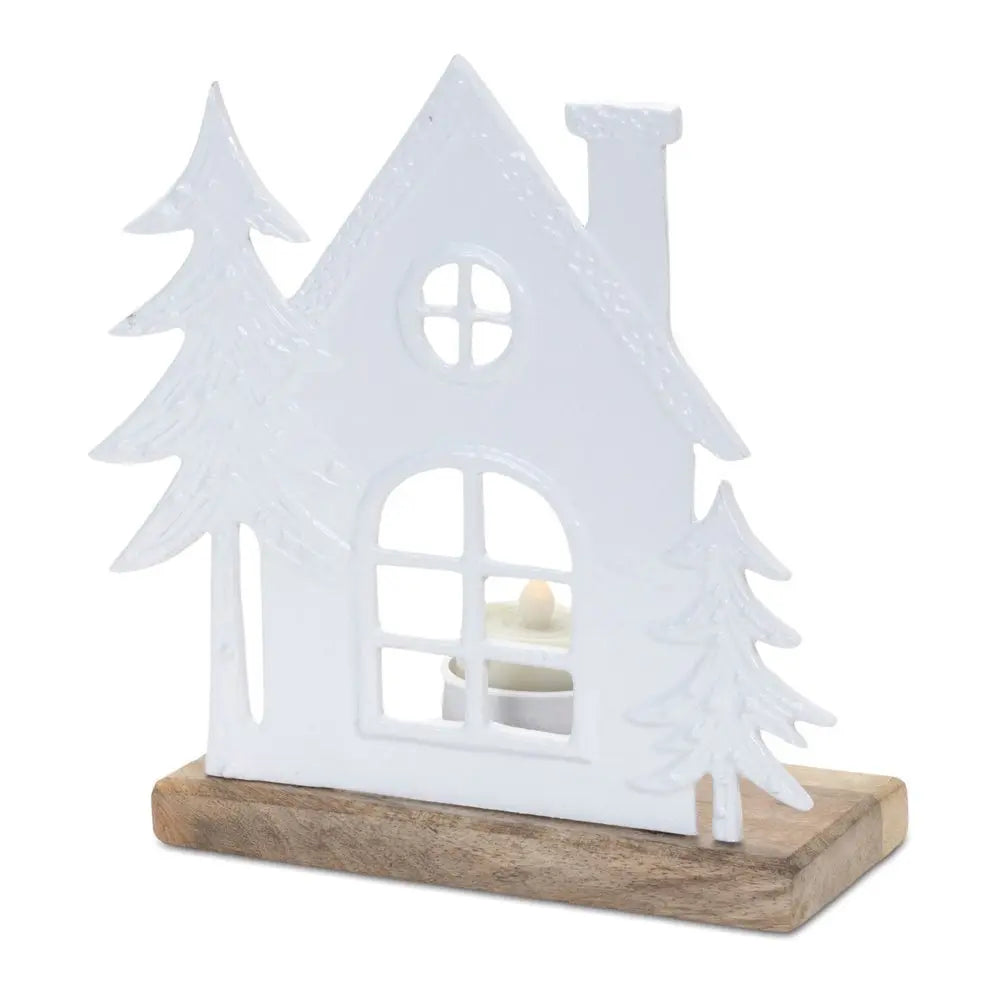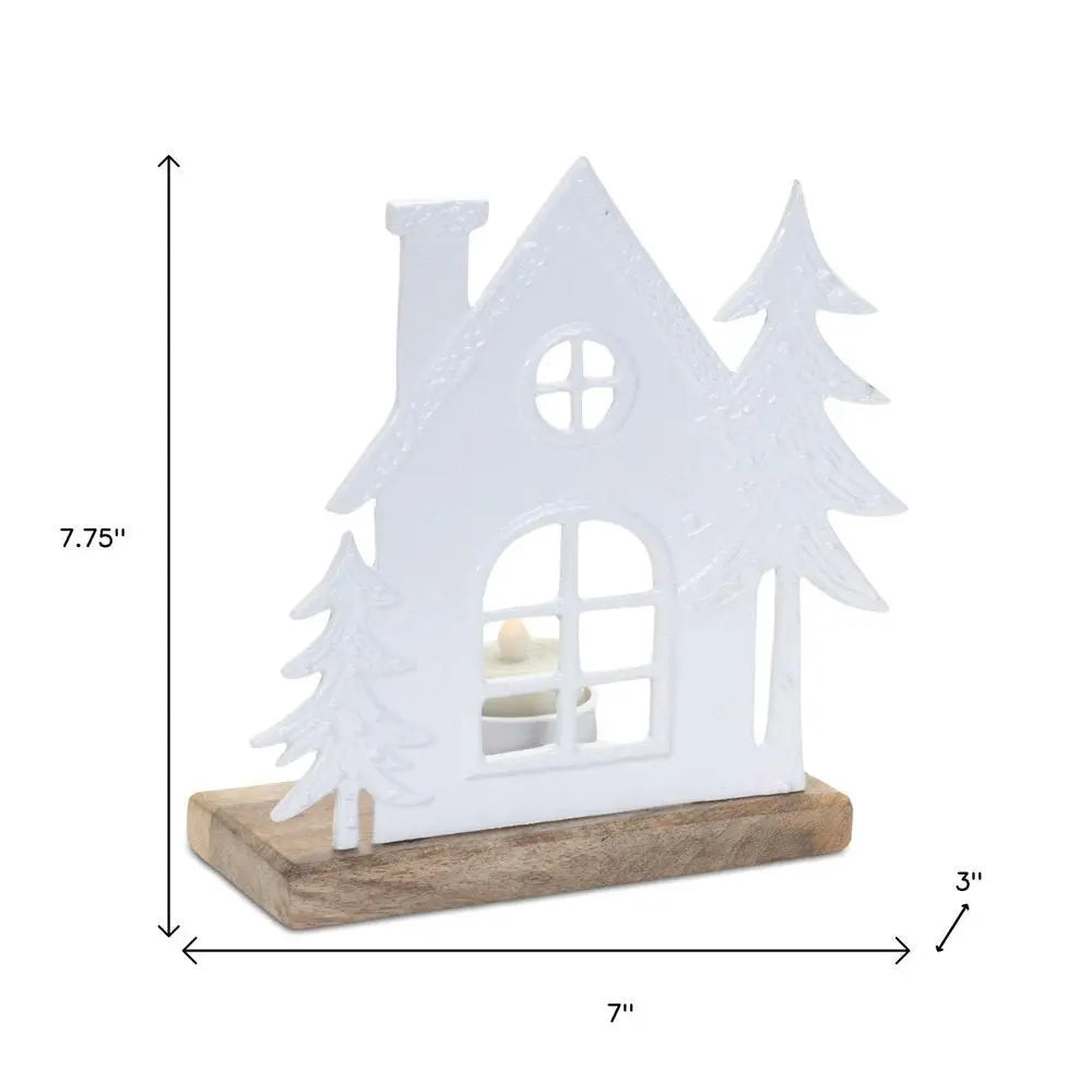 Set of Two White And Beige Abstract Aluminum Tabletop Tealight Candle Holders